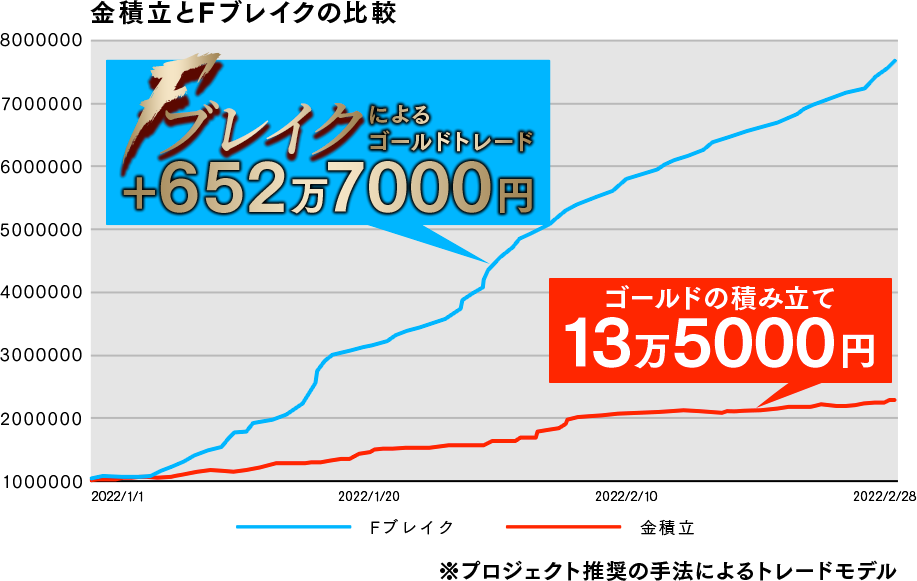 金の差益取引を行う場合では、このような資産推移の違いが出ます。